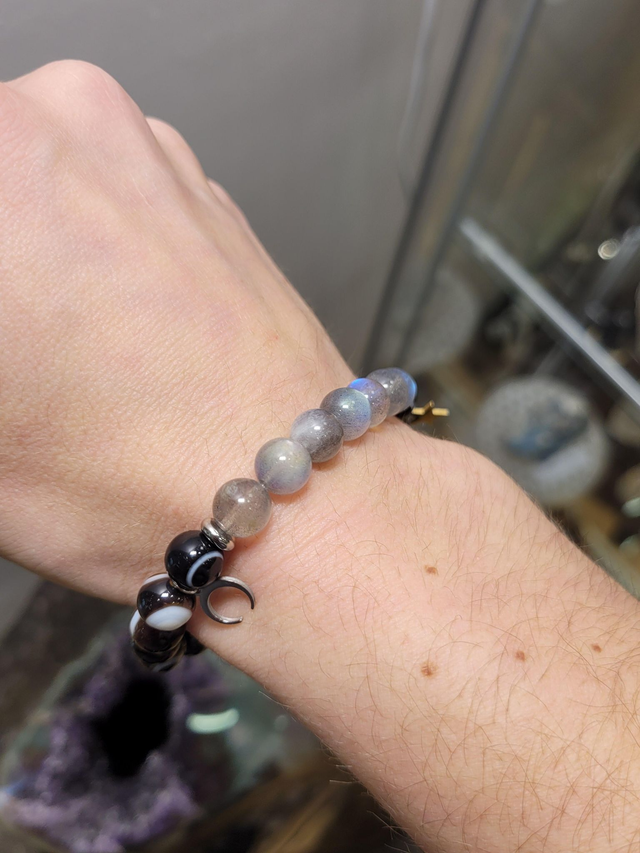 - Perles de 8 mm - Tour de poignet entre 16,5 et 17,5 cm (contactez nous si besoin d'ajuster la taille)
